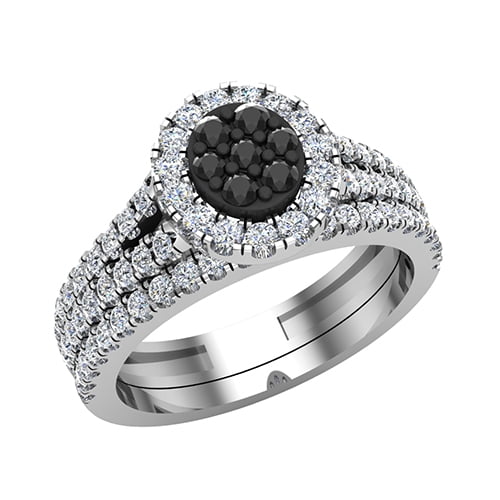 Black Diamond Wedding Ring Set For Women Cluster Diamond Halo Rings 14k White Gold 0 90 Ct Glitz Design Walmart Com